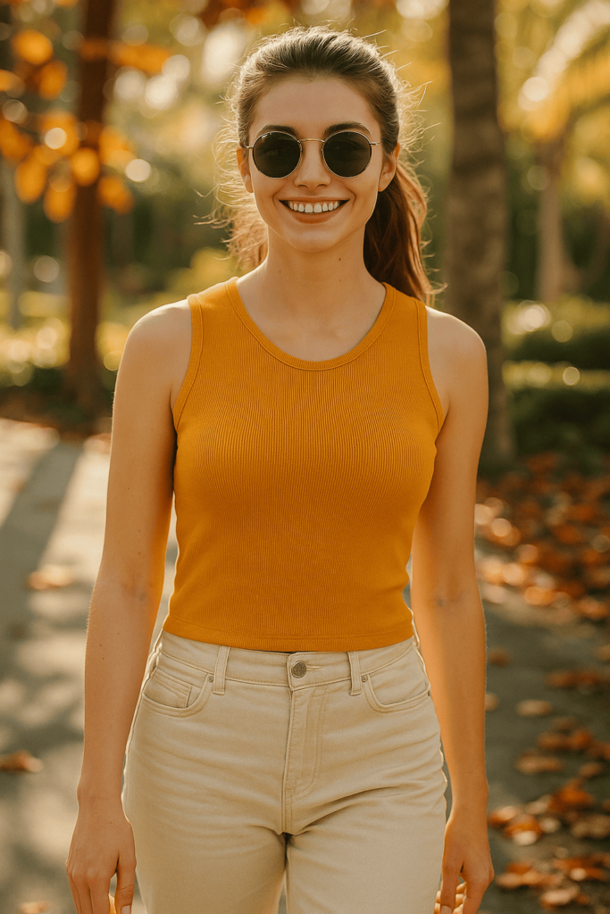 Product Description โ€“ Soleil Luxe: Mustard Riviera Tank
